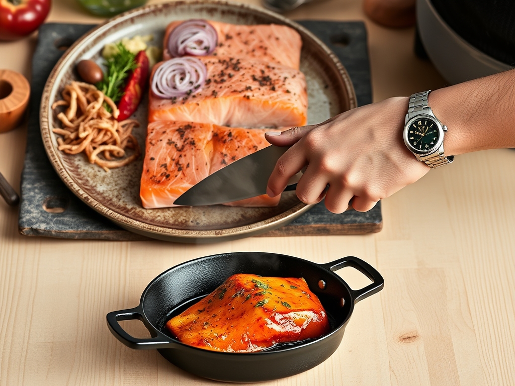 Efficiency in the kitchen is all about the Chef's Flow. Your total prep time should clock in at about 10 minutes. This involves patting the fish bone-dry and portioning your fillets using a sharp damascus steel knife or a reliable chef's knife.