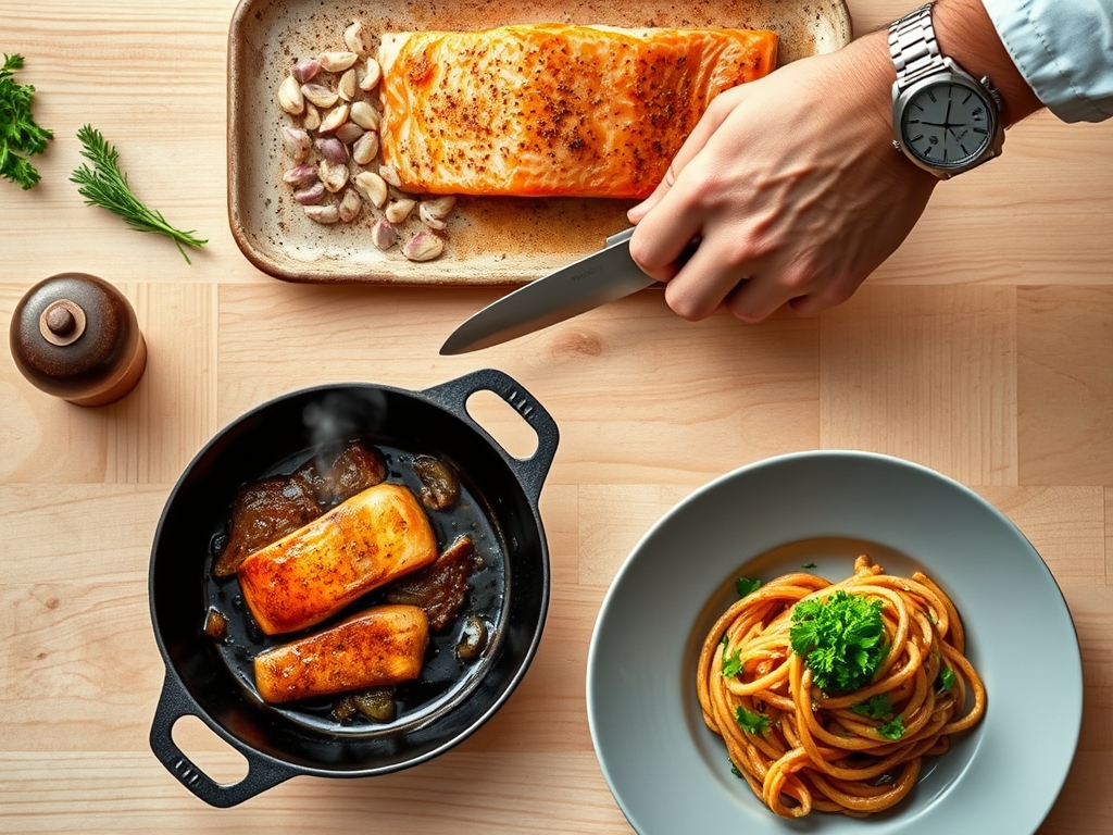 Setting up your mise-en-place is the difference between a frantic kitchen and a fluid one. For our primary protein, we are looking for 6-ounce fillets of Atlantic or King salmon. Look for deep pigmentation and firm muscle fibers; this indicates a high concentration of astaxanthin and healthy fats. You will need four cloves of fresh garlic, high-quality unsalted butter (which allows us to control the sodium levels precisely), and a viscous, cold-pressed olive oil to raise the smoke point of our fat blend.