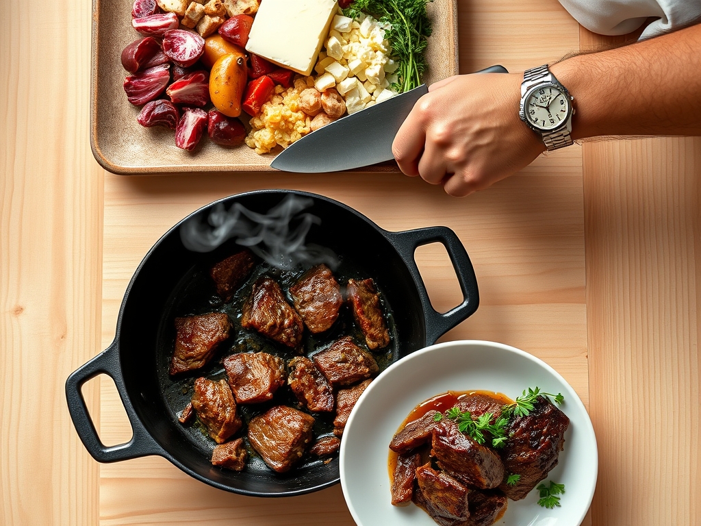 Place your beef in a preheated cast-iron skillet. Do not crowd the pan; overcrowding drops the surface temperature and leads to steaming rather than searing. Use tongs to flip the meat only once a deep, mahogany crust has formed.